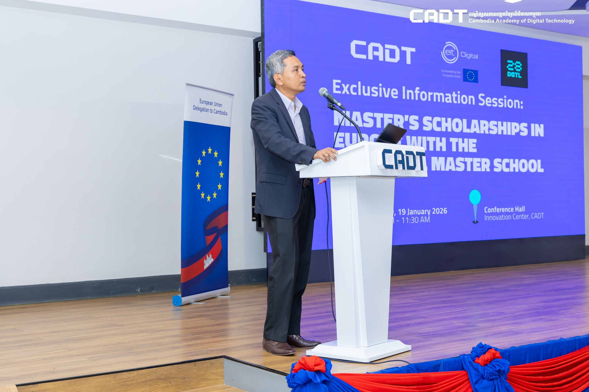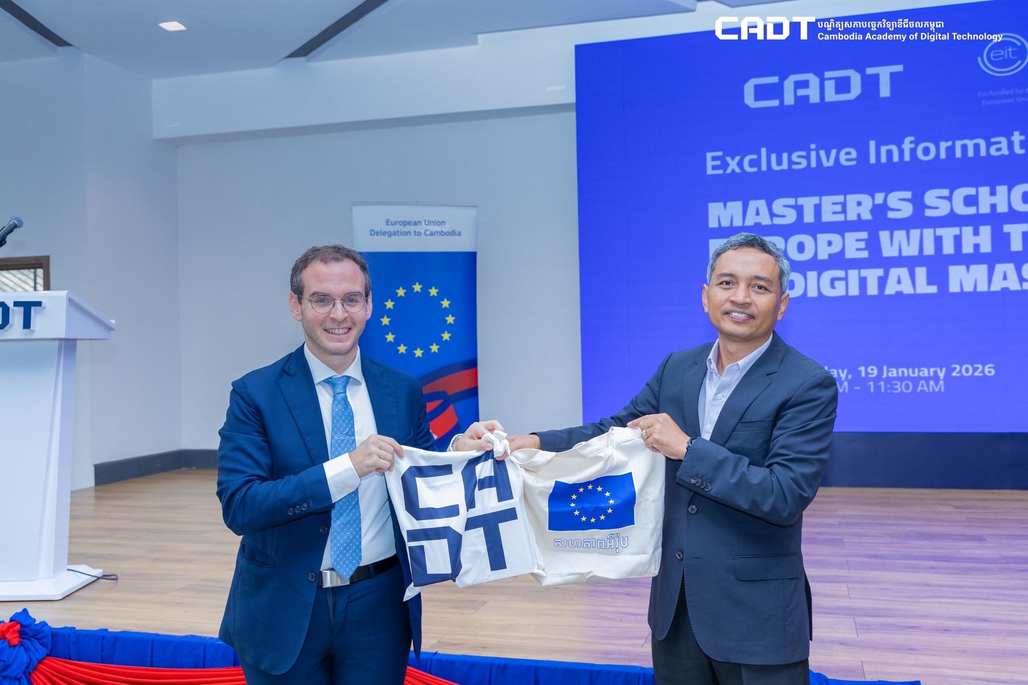 Phnom Penh, Cambodia — On 19 January 2026, the Cambodia Academy of Digital Technology (CADT) hosted an exclusive information session and collaborative discussion with 28DIGITAL, previously known as the European Institute of Innovation and Technology Digital at the Innovation Center. The visit aimed to introduce world-class academic opportunities to Cambodian students and strengthen institutional ties between Cambodia and the European Union’s digital education ecosystem.