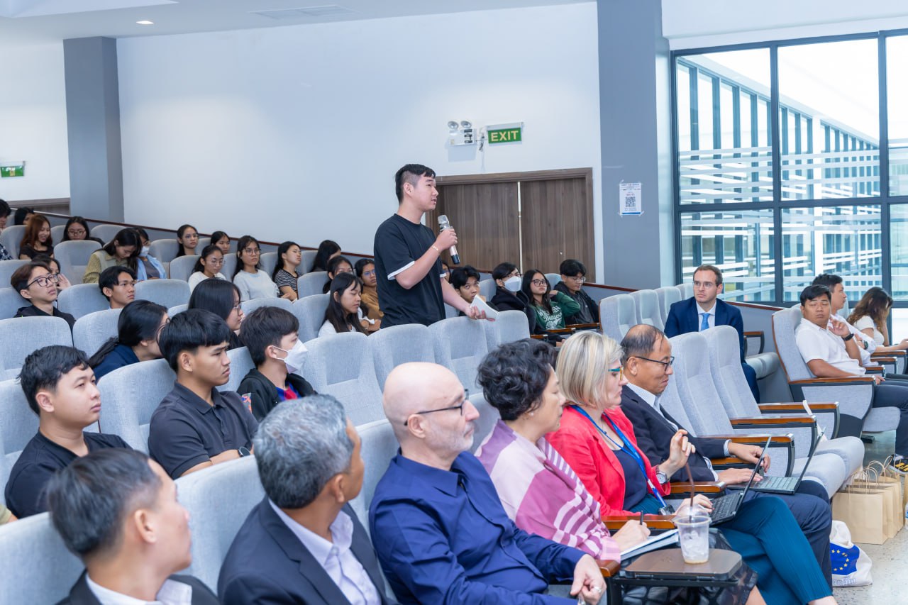 Beyond the student information session, leadership from both institutions, including representatives from the Embassy of France in Cambodia and the European Union Delegation to Cambodia, engaged in strategic collaborative discussions. The leaders explored possible future collaborations in the fields of digital technology as well as a potential cooperation for developing a Double Degree Master’s Program between the two institutes.