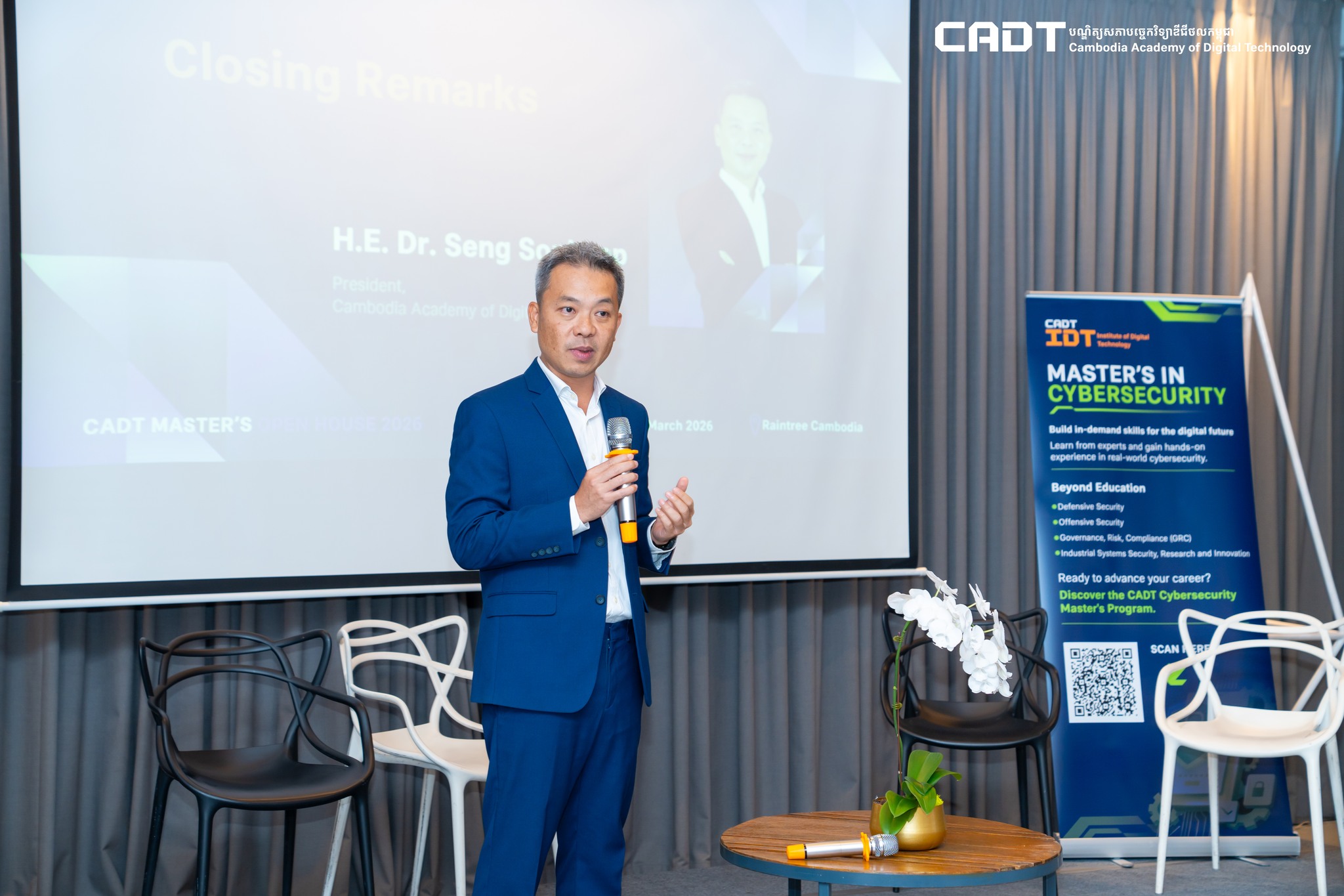 Phnom Penh, March 31st, 2026 – The Institute of Digital Technology at CADT successfully hosted the CADT Master’s Open House 2026 Cybersecurity, AI & Data Science to welcome a vibrant cohort of aspiring students eager to leverage cybersecurity and AI & Data Science skills for an impactful future.