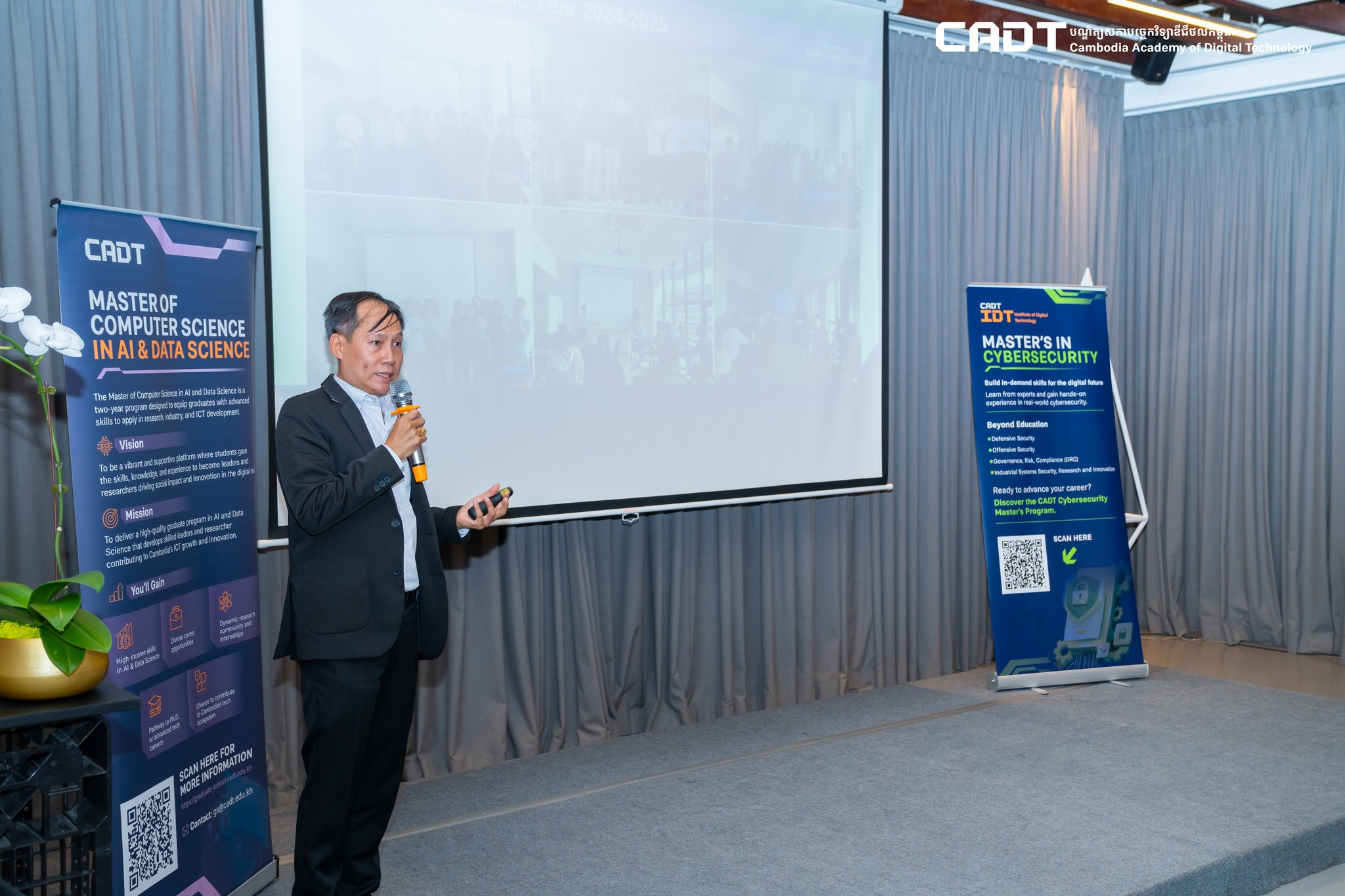 Participants gained valuable insights into CADT’s cutting-edge CADT’s Master of Cybersecurity and AI & Data Science curriculum. Our distinguished faculty, researchers, and industry experts presented a thorough overview of the program’s structure, various research opportunities, a panel discussion, and the promising career paths available upon graduation.